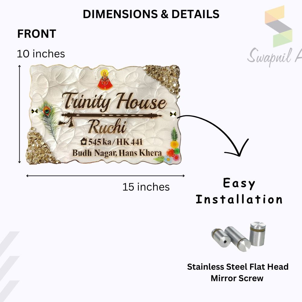 Resin & Acrylic Name Plate for Home Entrance, Flat, Bungalow (Stylish Resin Art)